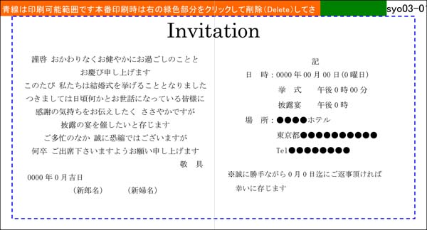 招待状本文のテンプレートです。