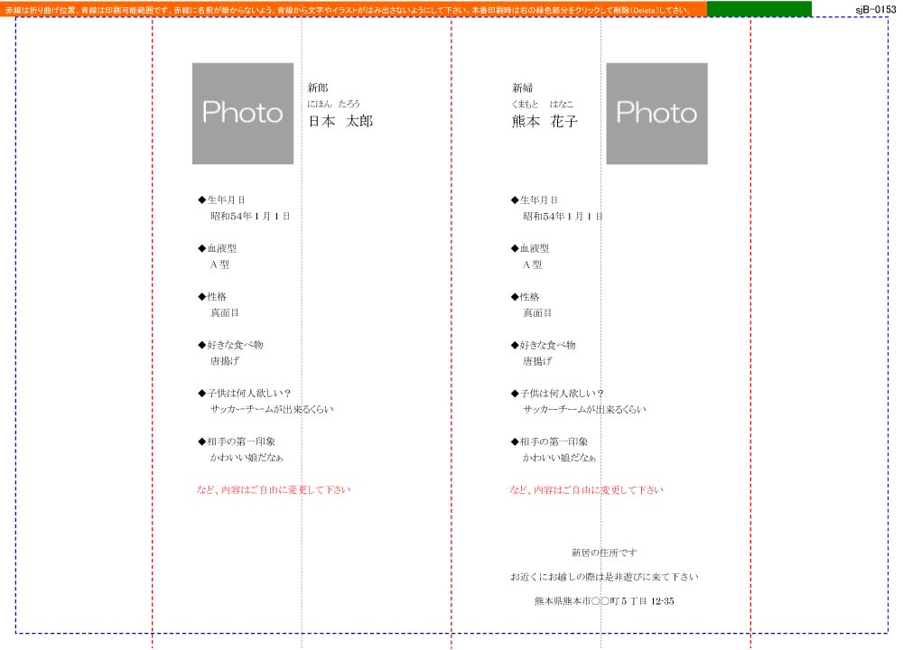 ※用紙サイズ、折り曲げ位置、余白以外はご自由に変更されて構いません。写真も必須ではありませんので、不要であれば削除して下さい。