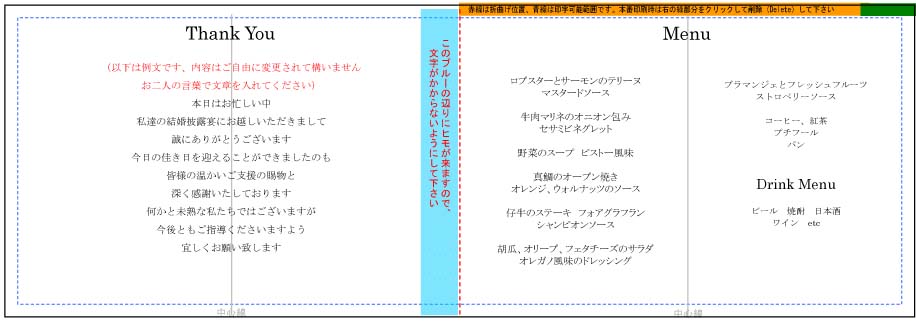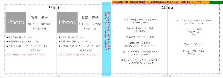 こちらは、表紙が小さい「メニュー表」用のテンプレートです。