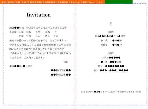 招待状本文のテンプレートです。