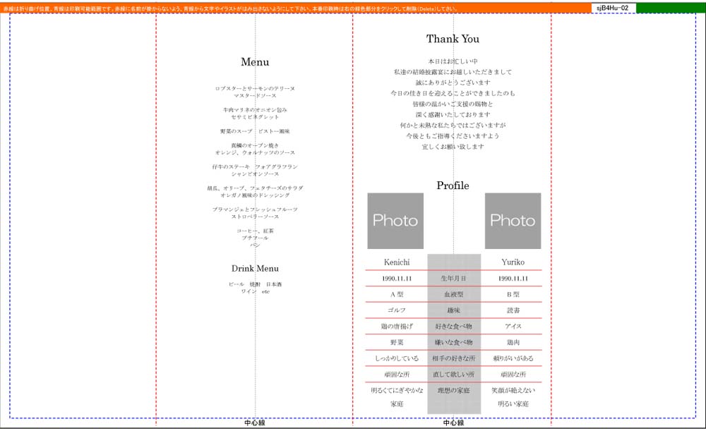 ※用紙サイズ、折り曲げ位置、余白以外はご自由に変更されて構いません。写真も必須ではありませんので、不要であれば削除して下さい。