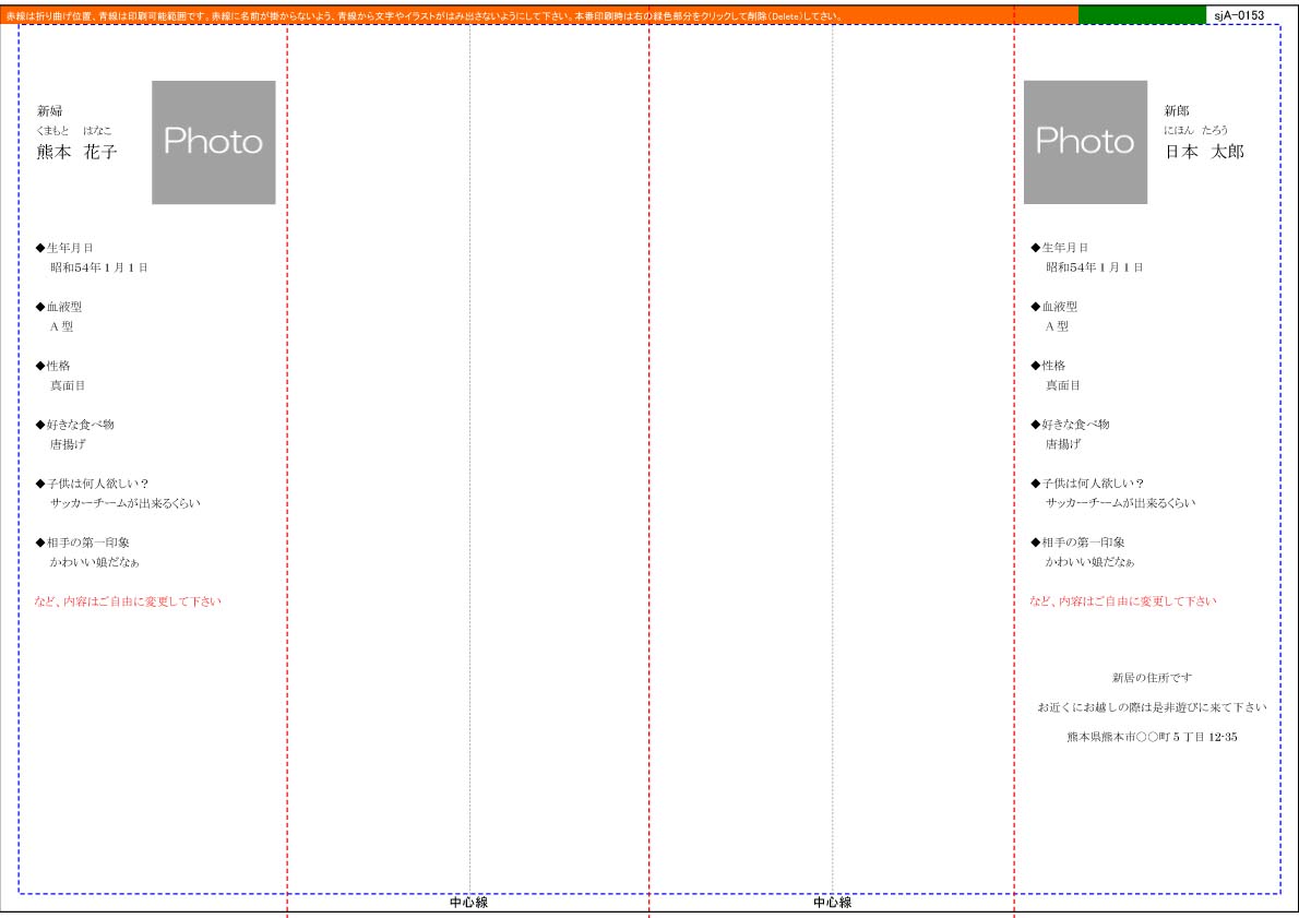 ※用紙サイズ、折り曲げ位置、余白以外はご自由に変更されて構いません。写真も必須ではありませんので、不要であれば削除して下さい。