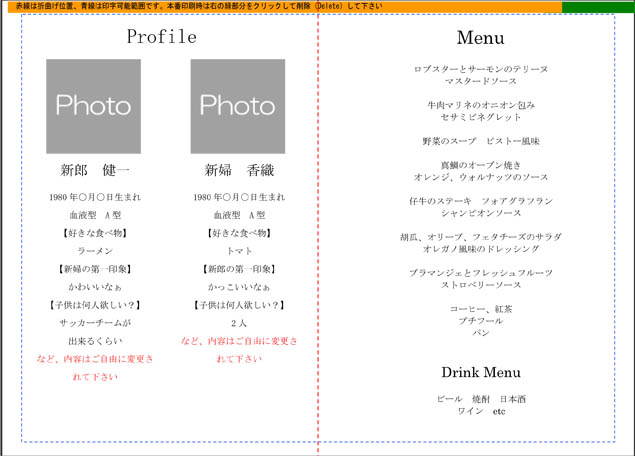 こちらは、表紙が小さい「メニュー表」用のテンプレートです。