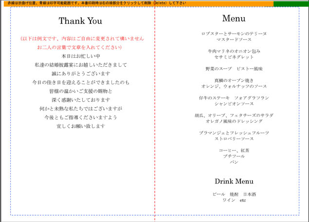 席次表の裏面にメニュー等を印刷される方は席次表のページにある
