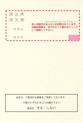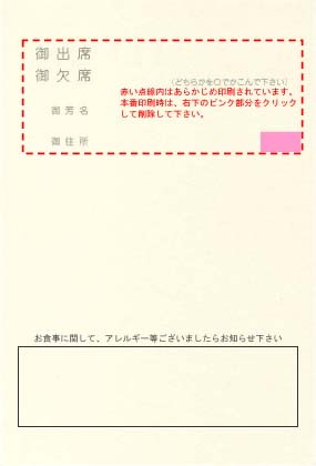 はがき裏面の出欠確認部分(赤い点線内)は、あらかじめ印刷されています。