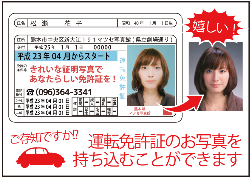 ご存知ですか? 普通自動車免許証の写真は持ち込みができます。